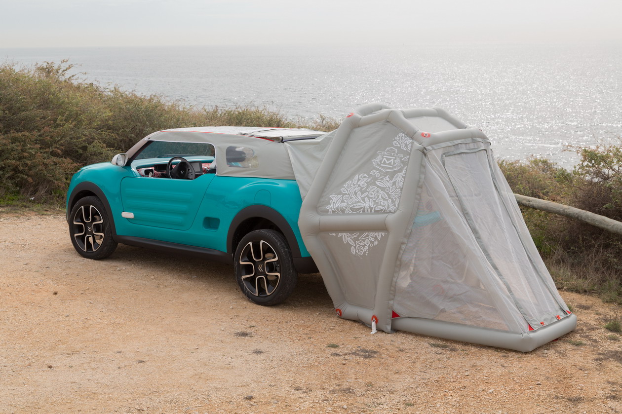 Na konceptu je mehka streha nameščena ročno, a jo je potrebno napihniti, da ostane na karoseriji. Če jo zasučemo na zadek avtomobila, se spremeni v šotor. V takšni obliki nastane z zlaganjem zadnjih naslonjala dvojna postelja!
