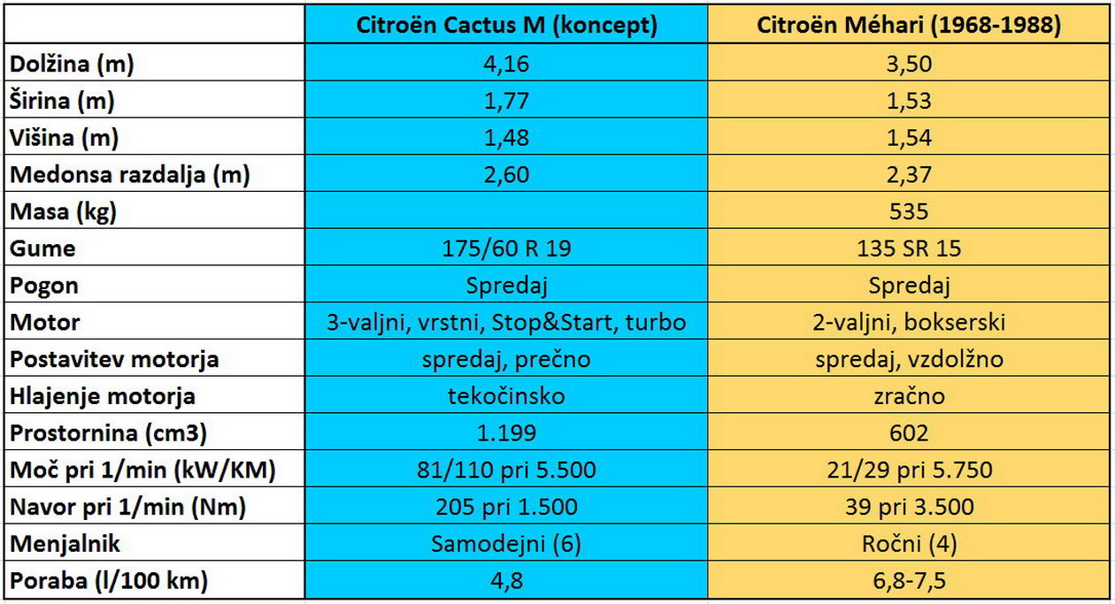 Citroën ima tri podobe blagovne znamke pod zaščito: ustvarjalnost, udobje in tehnologije. Proizvajalec, ustanovljen leta 1919 in od leta 1976 v lasti podjetja PSA, se znotraj koncerna zavzema za redefinicijo identitete treh simbolov, skupaj z DS in s Peugeotom, ki so sestavni del PSA. Leta 2014, z začetkom prodaje modela C4 Cactus, je Citroën dodal še eno vrednoto k svojemu DNK, konceptualno preprostost, s predstavitvijo koncepta Cactus M na avtomobilskem salonu v Frankfurtu letos septembra pa so potrdili interes za proizvodnjo avtomobila z Méharijevim pustolovskim in uporniškim duhom. Po znameniti portugalski cesti N247, ki je bila izbrana kot najboljšo panoramsko cesto na svetu za uživanje v vožnji in v okolici, smo vozili tako izvirnik kot novodobni koncept, tako počasi, da smo lahko uživali svež atlantski zrak s svetovno znane obale Guincho blizu mesta Cascais in da nismo storili žalega kateremu od avtomobilov; eden je namreč del zbirke starodobnikov, drugi pa celo unikat!