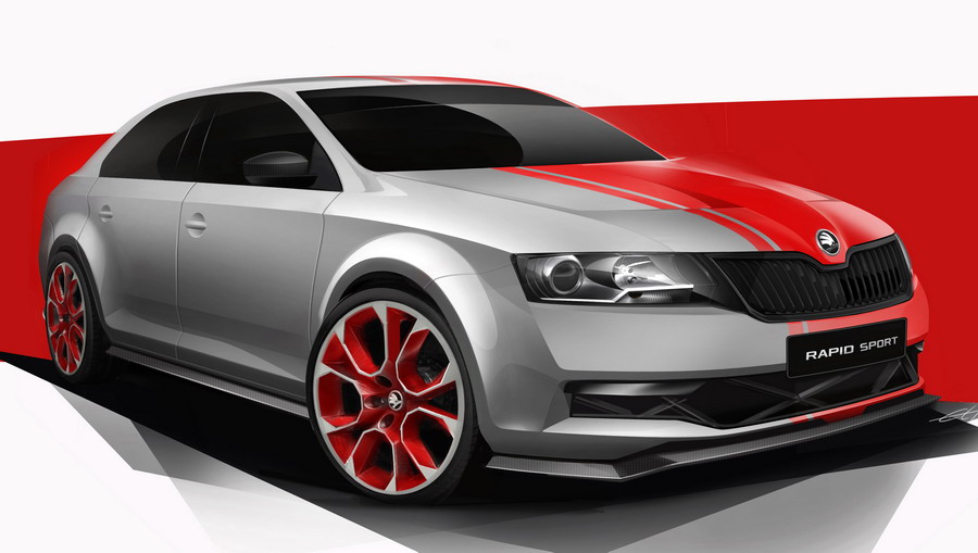 Škoda bo predstavila športno različico modela Rapid, obarvano v kombinaciji kovinskih rdeče in sive. Rapid Sport sedi na 19-palčnih kolesih in ima športnejša odbijača s spojlerjem spredaj ter z dvojnim zaključkom izpušne cevi zadaj. V kokpitu so športen volanski obroč in sedeža Recaro.