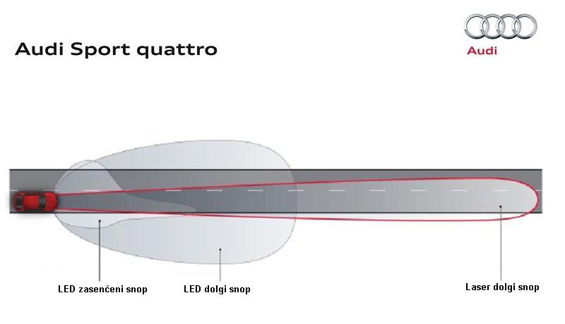 Tako kot BMW se je v prvi fazi tudi Audi odločil uporabiti laserko tehniko samo za ‘podaljševanje’ dolgega snopa matričnega žarometa LED.