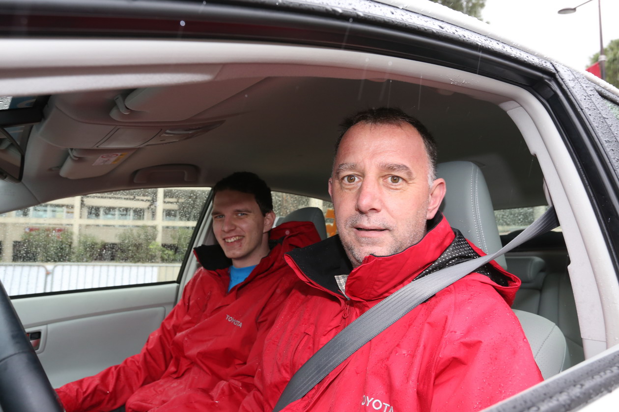 Primož Lemež (spredaj): Prius ima za serijski avtomobil zelo natančen merilnik poti (natančnost 100 m), toda večina tekmovlacev je opremila svoje avtomobile z merilniki, ki so natančni na centimeter …