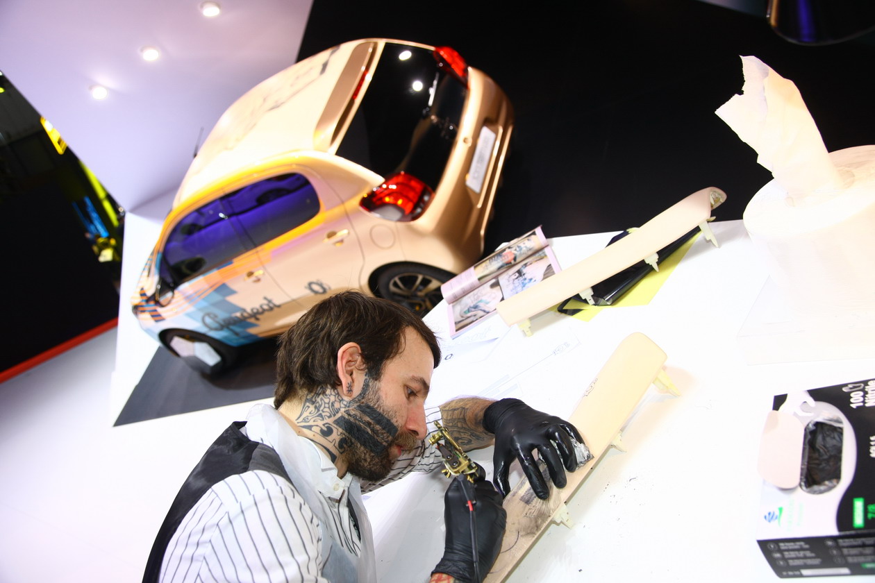 Peugeot je bil do neke mere in z nekega zornega kota bolj pogumen in izzivajoč. K sodelovanju so povabili mojstra tatooja, umetnika Xoila, ki je na sebi značilen način poslikal zunanjost novega 108. Pravijo, da je Xoil s svojim delom 108 spremenil v ‘živo telo’. K temu nekoliko pripomore osnovna barva avtomobila, ki nekoliko spominja na barvo kože. Na ta način do pokazali še eno od možnosti personalizacije avtomobila, ki je v zadnjem času zelo priljubljena pri kupcih – tudi cenejših avtomobilov.